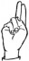 На ћирилици написано ТЕОФАН РОГЛИЋ састоји се из 12 слова [?]. Исписано ћириличном једноручном азбуком за глувонеме: